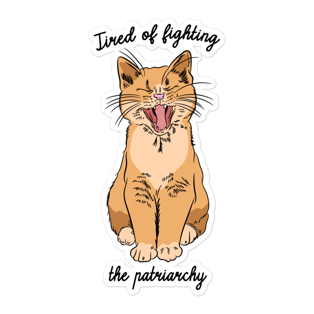 Even the fiercest feline needs a nap. This 5.5" x 5.5" durable vinyl sticker features one exhausted revolutionary — cute, funny, and clearly over it. Weatherproof, fade-resistant, and ready to stick to laptops, water bottles, or your emotional support iced coffee cup. Perfect for anyone who’s clawed their way through too many debates and just wants a cozy nap in a world that already gets it.