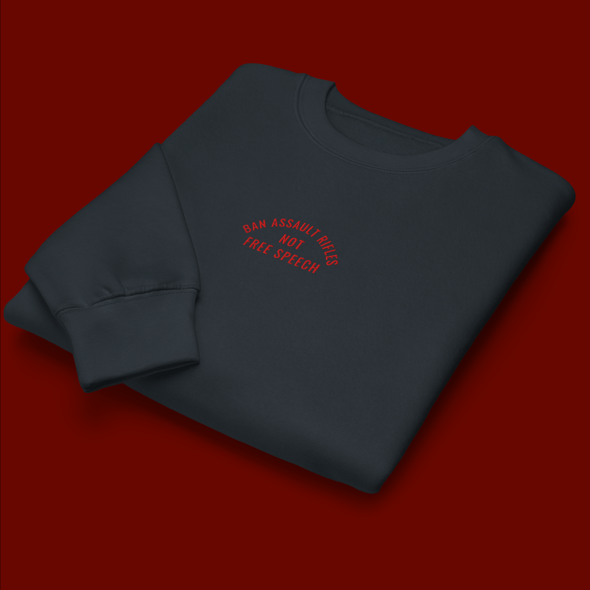 Wear your conviction lightly, but let it be unmistakable. Our Ban Assault Rifles Not Free Speech crew neck sweatshirt is a minimalist masterpiece — a quiet yet unflinching protest stitched into premium fabric. The design is small. The meaning is large.