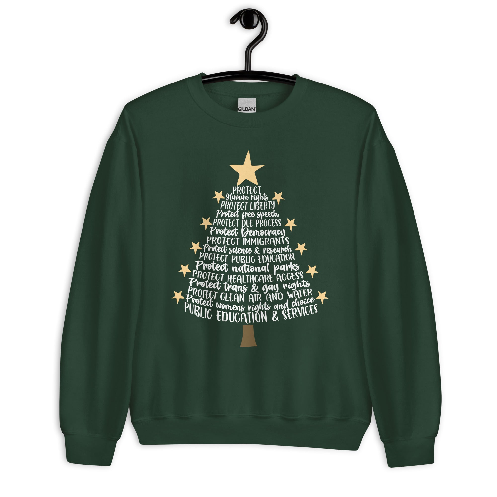 Protect Human Rights Holiday Word Tree Sweatshirt • Cozy Unisex Crewneck