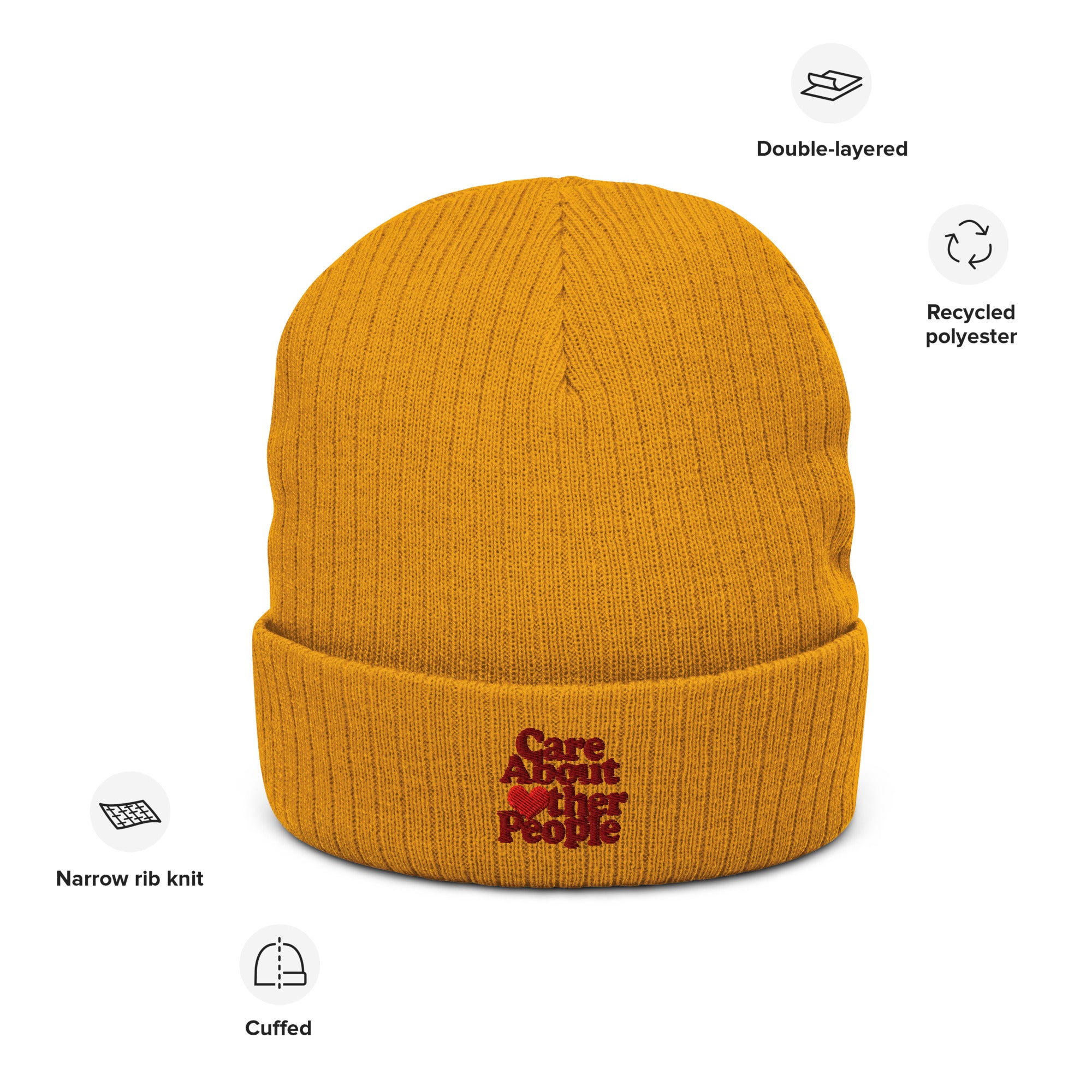 Keep your head warm and your values clear. This ribbed knit beanie in a rich mustard hue is embroidered with a simple but powerful reminder: Care About Other People. Soft, stretchy, and built to last, it’s the kind of accessory you’ll want on repeat through chilly days and activist seasons alike. Wear it to the march, or just on a coffee run—because kindness is always in style.