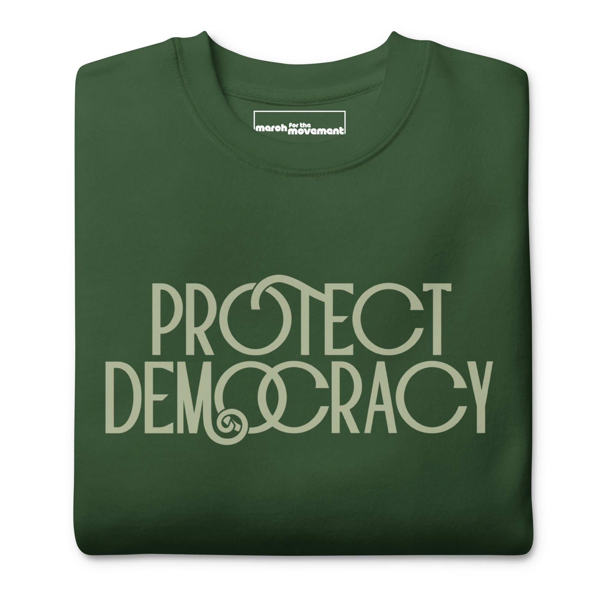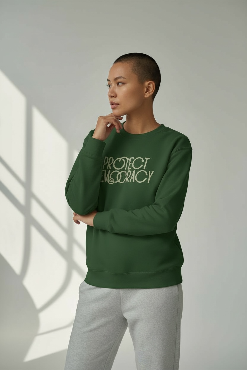 The Protect Democracy premium sweatshirt is soft, cozy, and made for people who believe voting rights, equality, and compassion are worth defending. A clean, elevated design you can wear anywhere — from school pickup to city council meetings to your favorite coffee shop.