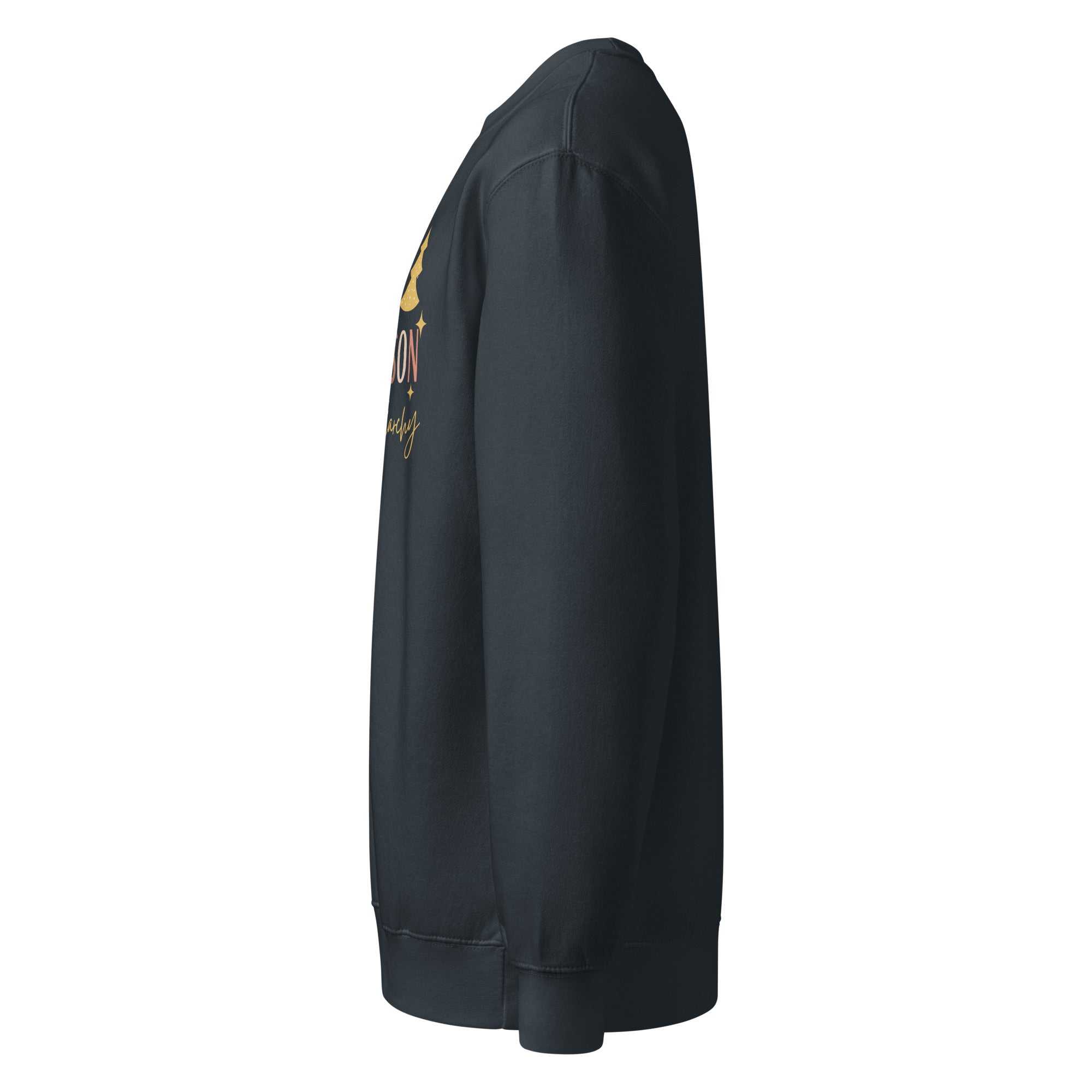 This premium sweatshirt has a smooth exterior and a soft fleece interior that feels like your favorite well-loved layer right away. The unisex fit is relaxed without being oversized, easy to style with jeans, leggings, or pajama pants during your holiday movie marathons.